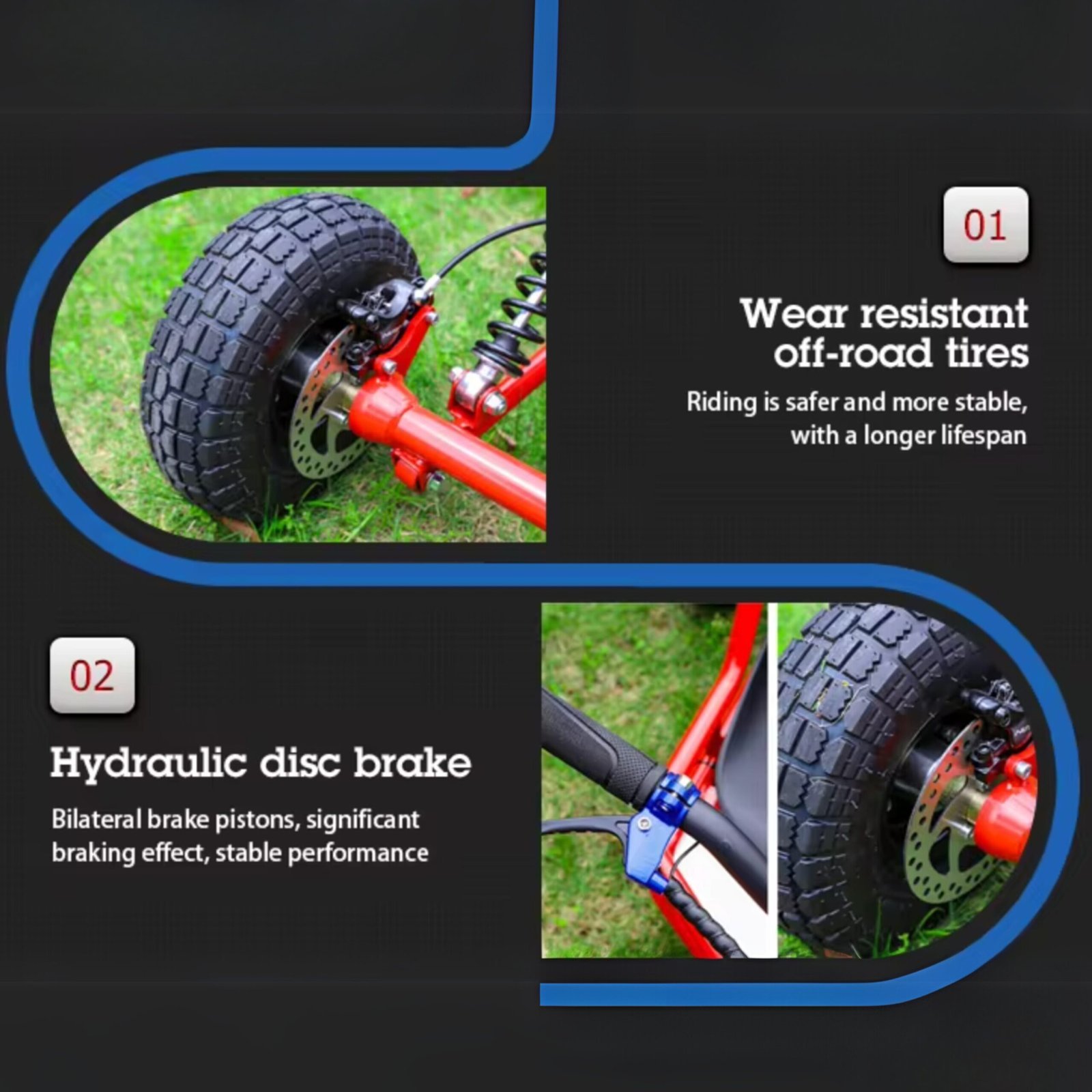 - Off-Road Capability: Rugged design handles grass, dirt, gravel, and uneven terrain with ease.